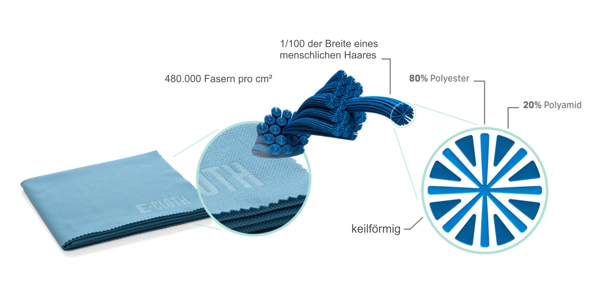 Mit 480,000 Fasern pro cm² haben E-Cloth Tücher eine hervorragende Reinigungskraft und Saugkraft.
